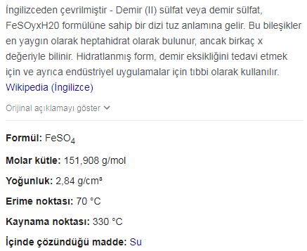Demir II Sülfat / Iron II Sulfate (FeSO4)
